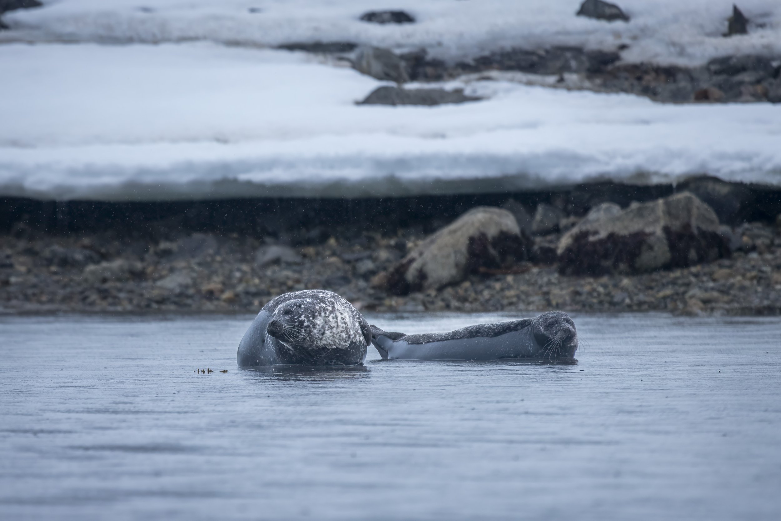 After the plunge we headed south a bit to Liefdefjord, considered one of the most beautiful in Svalbard. We saw a curious seal another glacier, Some King Eider ducks and some beautiful views